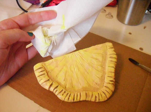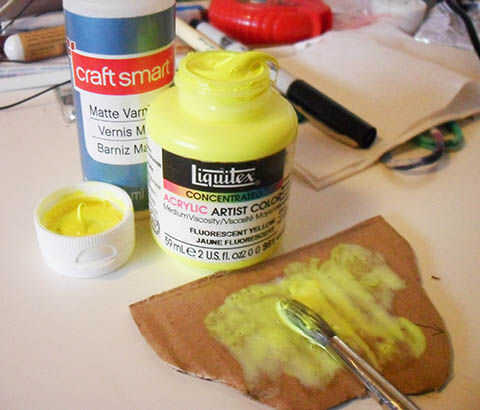 He utilizado acrílicos de arte que podía mezclar un color personalizado y dar algunos detalles a mi seta. Si desea hacer una aplicación de un color, se podría sustituir una capa de pintura en aerosol para este paso.