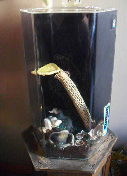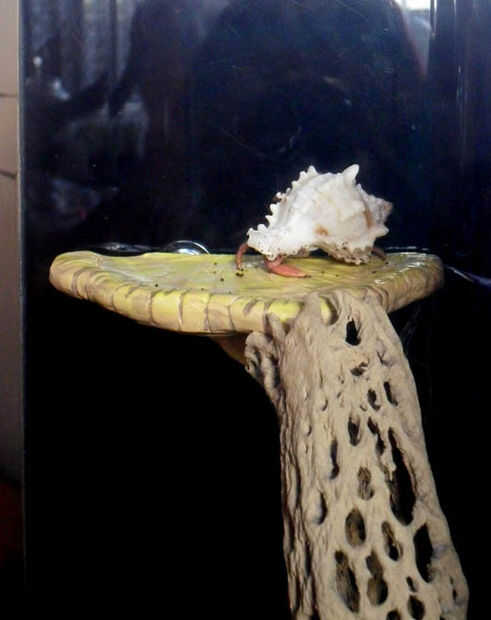 El tanque de acrílico tiene su necesario cambio de imagen y los cangrejos tiene una sala de "arriba" para enriquecer su tiempo de reproducción y forrajeo. He estado satisfecho con el rendimiento de las ventosas y en realidad no son demasiado intrusivos en la ilusión. Los cangrejos figuraban el arriba y abajo bastante rápidamente.