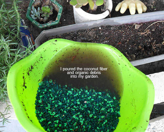 Vierte el resto de suciedad y agua sucia en mi jardín. El critter residuos y alimentos se pueden poner a trabajar como fertilizantes, y los pedacitos de la cama de la selva se desvanecerán naturalmente. No sé lo que todo era en eso agua inútil, pero te voy a decir que algunas semillas latentes largo que tuve en esa jardinera por arte de magia surgieron a la vida después de recibir esta segunda vuelta!