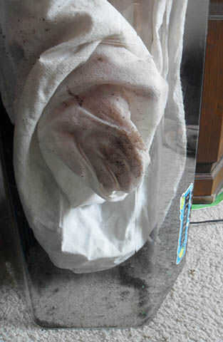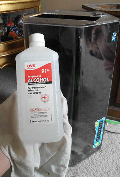 Después son migas de escombros grandes, hacer un segundo trapo con alcohol para frotar. Esto fue un paso recomendado por un chico en la tienda del acuario, para obtener el más fino polvo y pelos de la superficie antes de fregar.