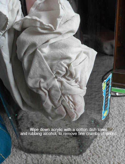 No use toallas de papel en el acrílico, que pueden rayar! Estoy seguro que algunos de los defectos que hay que corregir ahora debido a un momento de pereza donde pensé "Hmm... Me pregunto si realmente se raya... * Limpie limpie *... YEP. Lo que hizo.