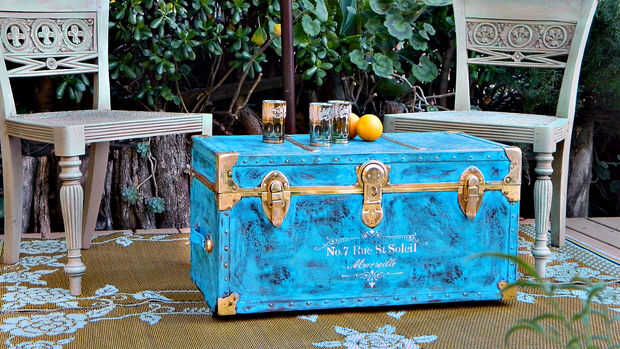 Un familiar descubrió recientemente he restaurando troncos y muebles para un hobby, y recordaron que su madre tenía un viejo baúl en el sótano. Como se puede ver, había disminuido de un tronco prístino que llevó un posesiones de familias enteras de L
