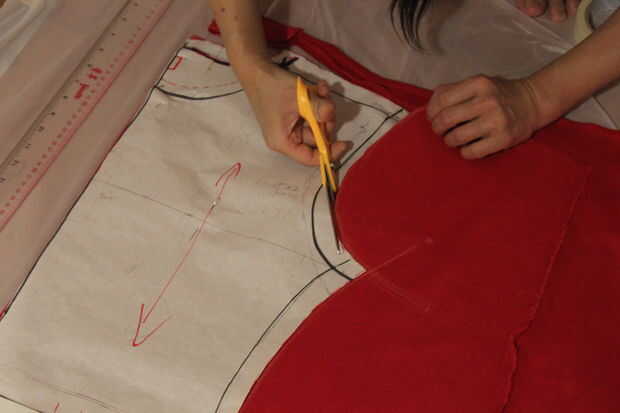 2. poner los patrones de su papel en la parte superior (con la frontera de costura de 2-3 cm)