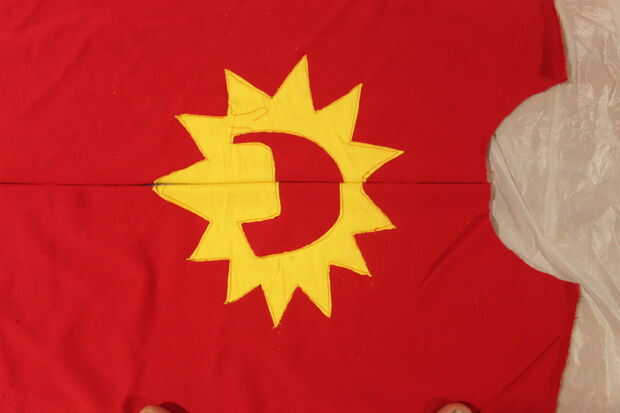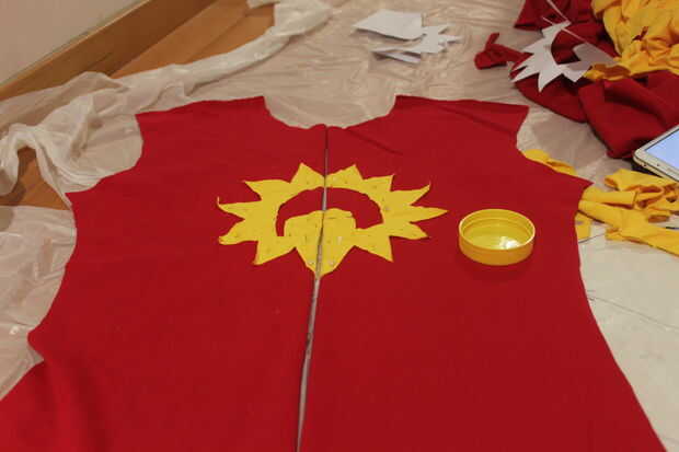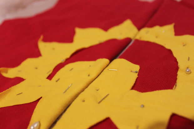 - con cuidado recorte el patrón del logo en una tela amarilla