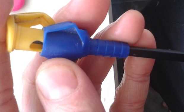 b.) meter el palillo hasta el tubo de entrada de agua que usted acaba de quitar la manguera. (imagen 3)