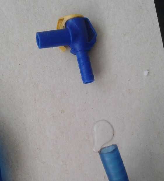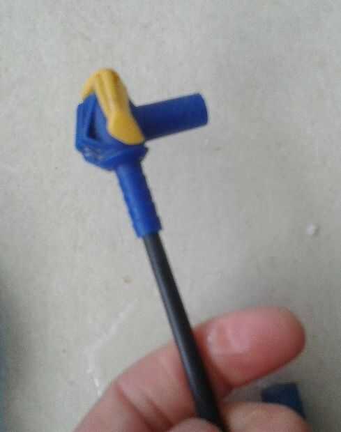 c.) justo por debajo del tope de la llave (Figura 4) es una pequeña cresta que mantiene en su lugar, así que colocó la base de los palillos en el Banco y empuje hasta que hay un "clic" y la parte amarilla del grifo salta barril fuera de azul