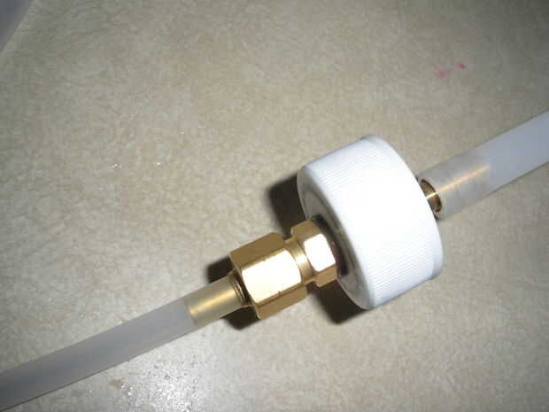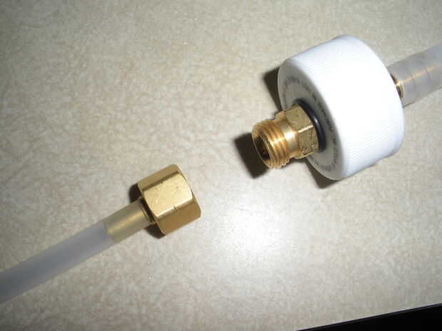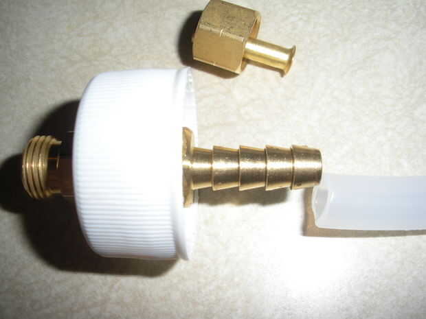 9. Atornille el accesorio de tubería más pequeño en el otro extremo de la tapa.