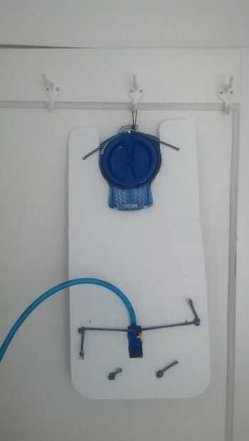 Usé algunos cable hacer paradas donde ves a la botella de agua en la base de apoyo. Nunca recibí mi insignia de mérito de nudo-atar, pero parece un modificado
