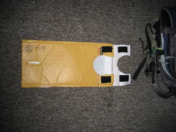 Tomar el exceso que corta de la envolvente de antes, debe ser bastante largo y unas cuantas pulgadas de ancho. La costura fuera y luego picamos una longitud de lo que es equivalente a la longitud de la aleta en la envolvente. Poner esta sección por sí mismo en un pliegue de papel encerado, quieres que sea plana y completamente cubierto por el papel encerado. Calentar la plancha otra vez y ejecutarlo sobre el plástico hasta que se han fundido todas las burbujas y sólo una sábana delgada. Despegue la cinta adhesiva en la solapa de sobres y utilizarlo para colocar la nueva pieza de plástico. Si desea que puede usar papel encerado y el hierro otra vez para los dos se funden. Utilizar el mismo truco de antes para marcar donde usted necesita cortar el semicírculo de la aleta. Esto le permite llenar la vejiga sin tener que llevarlo a cabo y hace para una mirada limpia en general.