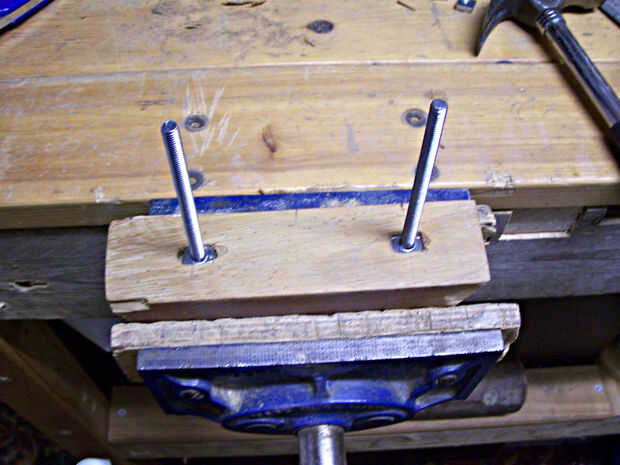 Suponiendo que usted no tiene un tensor alrededor o simplemente no desea utilizar uno como dije antes que usted puede encontrar un molino o un archivo útil en este punto, que realmente depende de qué tipo de pernos tienes, utilicé 80mm largo 6mm pernos con cabezas redondas, no porque eran fantásticamente bien adaptadas para el trabajo sino porque pude hacerlos adecuados y ya estaban disponibles después de haber quedado en el de otro proyecto.