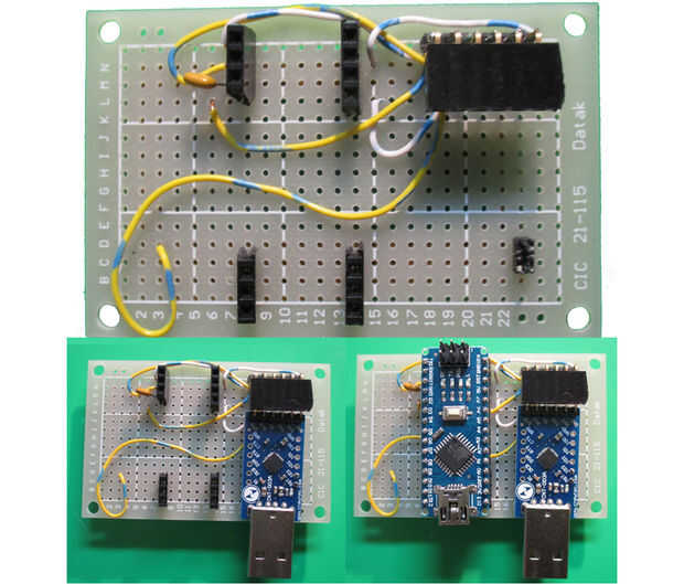 La característica sólo significativa en el diseño debe tener agujeros de 7 x 15 para el Nano, 6 agujeros para el encabezado y espacio suficiente para maniobrar la conexión de cable.
