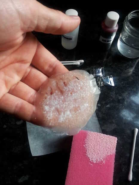Comienzo con una esponja y látex sobre la zona que desea que el dispositivo a ser y en la parte posterior del aparato también...