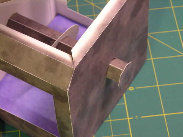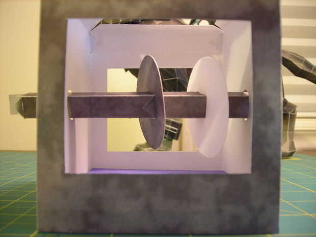 Pegar piezas 25 y 26 en una plaza. Aplicar el pegamento en el interior de la parte 25 en el extremo que falta una sección y adjúntela al eje en un ángulo de 90 grados. Conecte la parte 26 de la misma manera de la parte 25, la misma dirección que el eje (ver última foto).