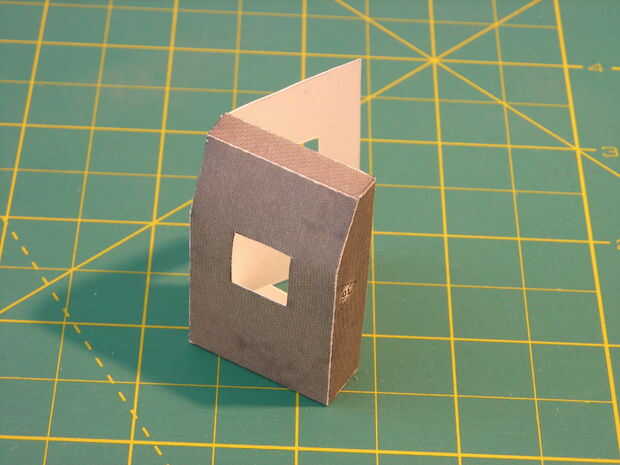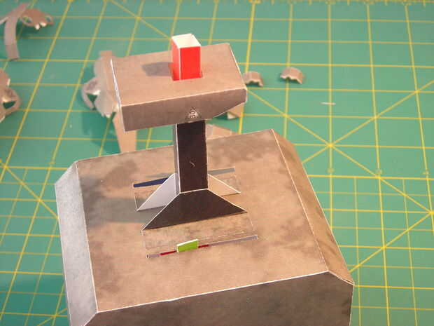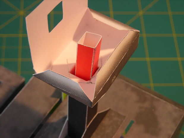 Pegar piezas 30,33,36 y 39 en prismas triangulares. Pegar dos de estos a los lados de la parte 29 sigue las líneas de guía impresión.