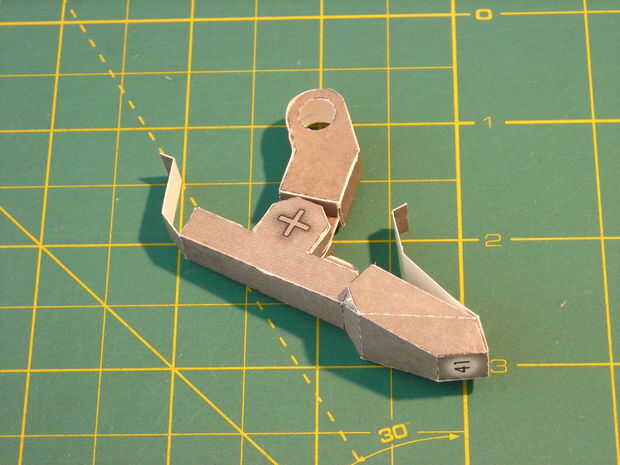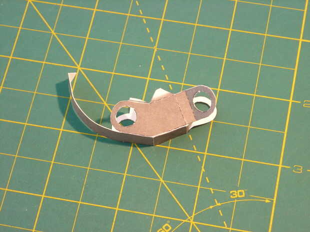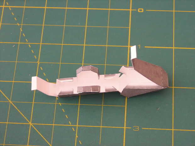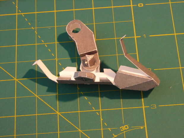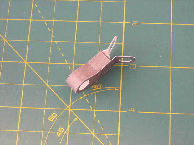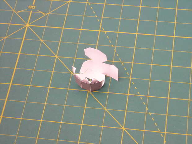 Para armar la parte 40 Inicio pegando la tira inferior alrededor de unas aletas como en la cuarta foto. Ahora pega el flacas tiras a cada lado para las pestañas más cercanas (cuadro 5).