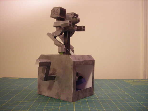 Para terminar el Mech Warrior pegar los brazos a la parte 42 siguiendo las líneas de guile y coloque el conjunto entero superior sobre el rojo de la barra que sobresale de la base de la pierna (parte 5).