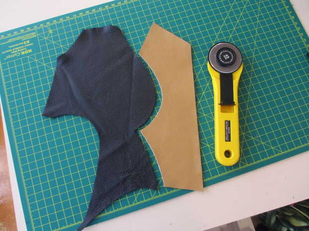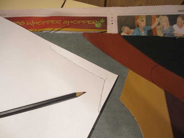 Para algunas formas, había hecho plantillas de papel trazando las piezas de piel circundante sobre el papel, luego utiliza la plantilla para cortar un pedazo de juego de cuero para caber en el espacio.