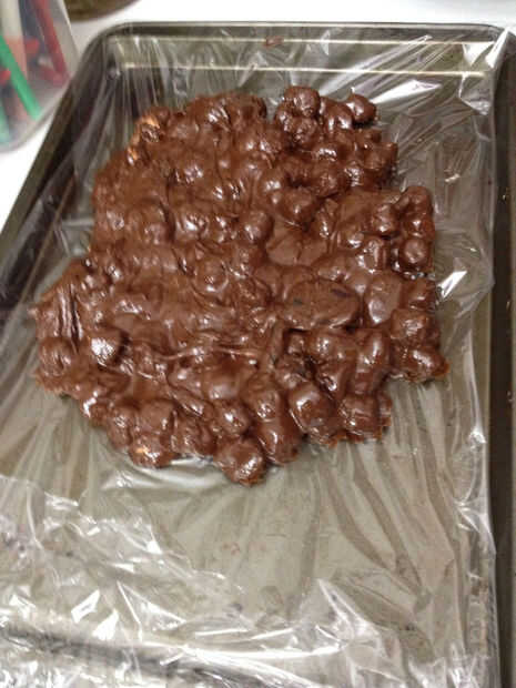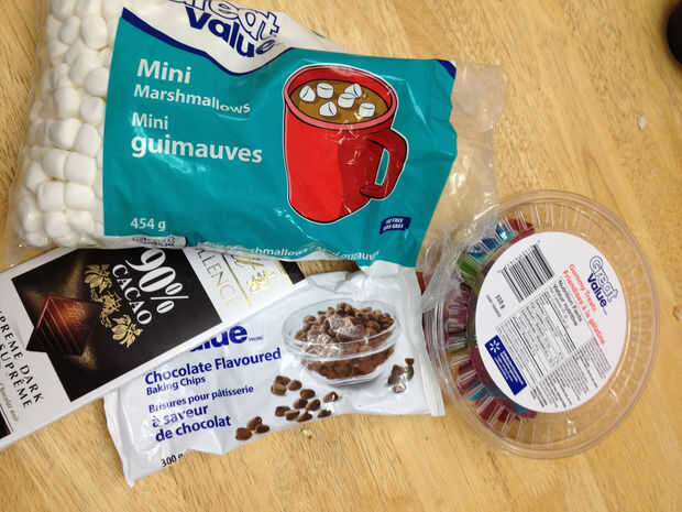 Sacar del fuego y revuelva en caramelos y malvaviscos