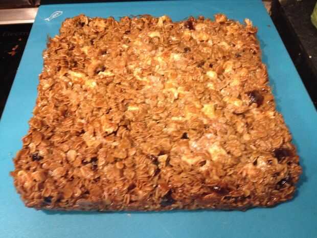 Cuando pueda, levante el flapjack fuera de la lata y sobre una tabla.