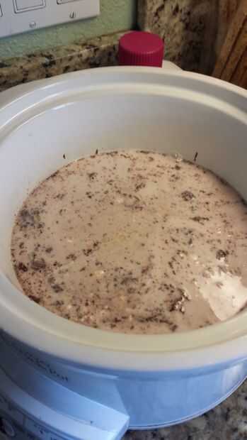 A continuación, espolvorear la mitad de su pudín instantáneo la mezcla a la mezcla ya en la olla y dejar reposar unos 5 minutos. Ahora vertemos en nuestra capa media en la parte superior. es normal ver una pequeña mezcla de spot a través de su capa media.