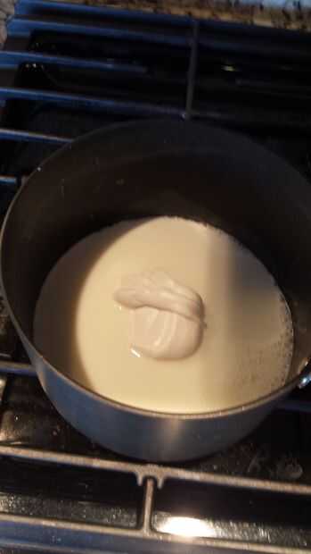 Ahora creamos nuestra capa intermedia con el resto de la leche y nuestro paquete de relleno que viene en nuestra mezcla para pastel. Usar una cacerola o cazuela a fuego lento las 2 tazas de leche y relleno de la Magdalena. No debe hervir. Debe usar fuego medio sobre la estufa.