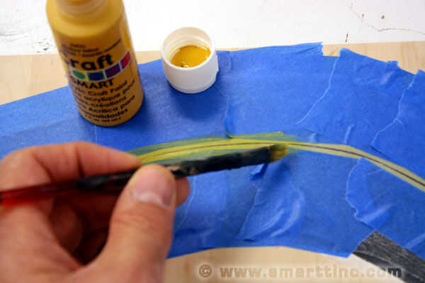 Dependiendo de la época y lugar, sus líneas pueden ser amarillo o blanco. Busque referencias de la foto esto si está disponible. Mojar un pincel en la línea de pintura, usando el mismo tipo de pintura que usted antes seco cepillado de color. Limpie la mayor parte de la pintura el pincel. Si pones demasiada pintura, se escurrirán debajo de la cinta. Esta técnica es casi lo mismo que el seco cepillado antes, pero con un poco más pintura en el pincel. Sólo se concentrará en el área expuesta entre las tiras de cinta. El enmascaramiento se guardarle de conseguir pintura en el resto del camino.