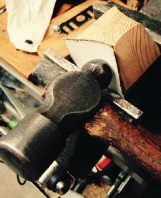 Después de un par de intentos con otros medios, me pareció el mejor método fijar las piezas de acero en un torno con la maqueta de madera. Entonces golpeó el metal a la madera lo mejor que pude. (Me dicen las partes del cuerpo para algunos caro aluminio tamaño completo automóviles están hechos sólo de esta manera).