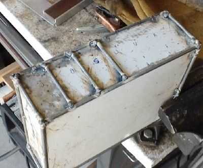 Un cuadro de descarga en un camión real utiliza numerosos refuerzos. Soldó con autógena varilla de 1/8 de pulgada más cortado a la medida para los montantes.