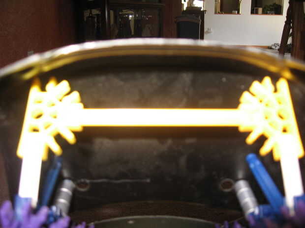 Este cuadro hace ruidos de miedo y tiene ojos rojos brillantes que encienden cuando apagan las luces. Poner debajo de una cama o escritorio a broma sus amigos (o compañeros).También podría cambiar el tipo de sensor para hacer un monstruo activada por