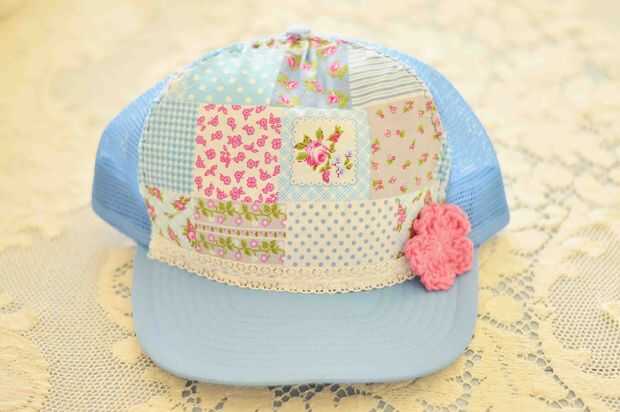 Opté por mantener los deshilachados bordes de la tela y la mano lo cosió al sombrero.