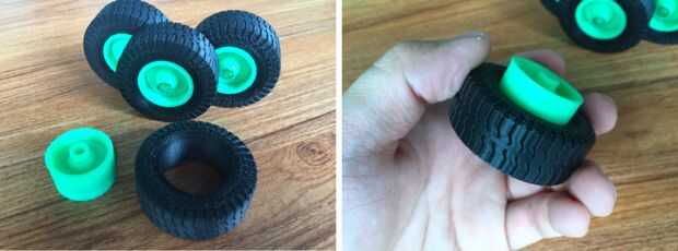 Inserte el eje de rueda del neumático. 6 ruedas son las mismas.