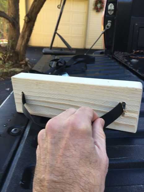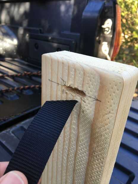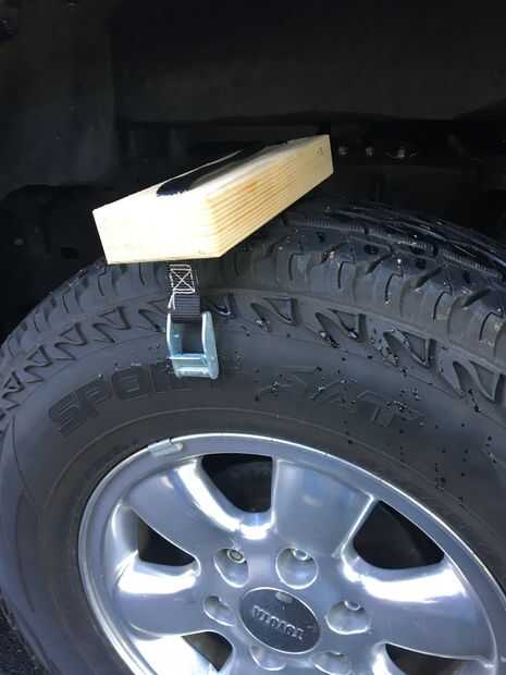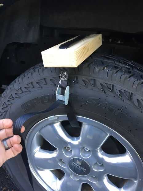 La correa a través de la alimentación y luego el otro entonces atado a su neumático de vehículos.