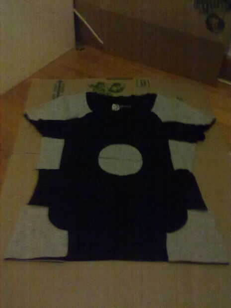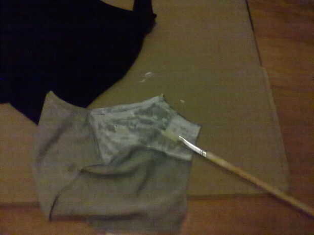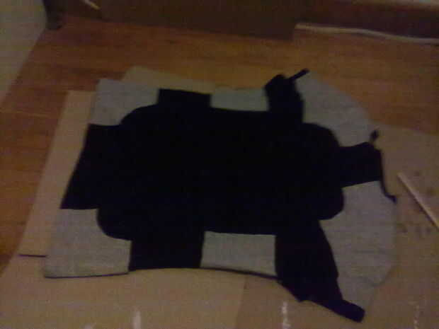 Ahora, Coloque suavemente la forma gris de la camisa negra forro op las costuras. Presione hacia abajo y asegúrese de que no hay burbujas de aire en el pegamento.