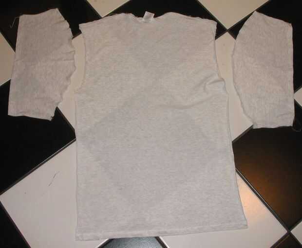Encontrar una camiseta a tu medida. Cortar aparte en la parece. La mayoría de camisetas están hechos de un tubo de tela, así además la parece, haga dos cortes hacia abajo de las axilas.