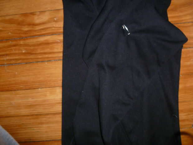Inserte el pasador de seguridad a través de las dos mangas y la parte posterior de la camisa. Luego cerrar el perno de seguridad. Asegúrese de que el perno de seguridad no pasa por la capa frontal de la camisa. Esto evita que el perno de seguridad siendo visible cuando la camisa se volcó.