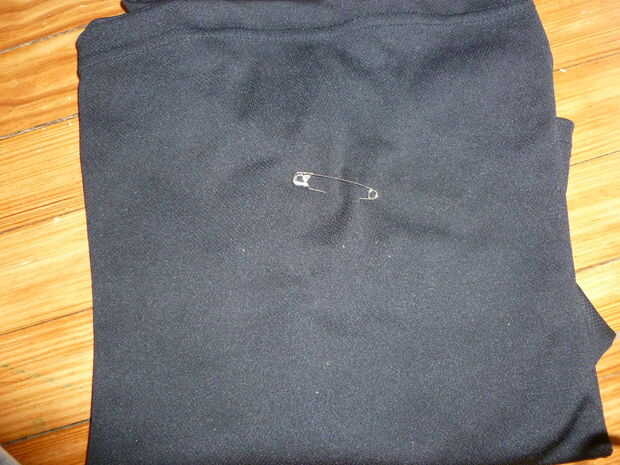 El segundo pasador de seguridad a través de la capa doblada encima de la camisa y la parte posterior de la camisa. El sleevs puede cubrió en así, pero no he podido conseguir el perno de seguridad a través de las mangas así como el doblado para arriba de la capa y la parte posterior.