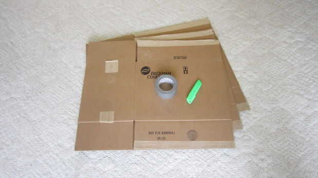 Los materiales que necesita para este proyecto son de cartón y cinta adhesiva. Más específicamente, necesita seis piezas de cartón corrugado que son por lo menos 9 pulgadas (23 cm) por 12 pulgadas (30,5 cm) cada uno. He encontrado pedazos del tamaño apropiado en la forma de tres cajas de envío que tuve en mi garaje. La cinta del conducto puede sustituirse por cualquier otro tipo de cinta. Sin embargo, hay algo icónico sobre un proyecto que está hecho de nada sino de cartón y cinta adhesiva.