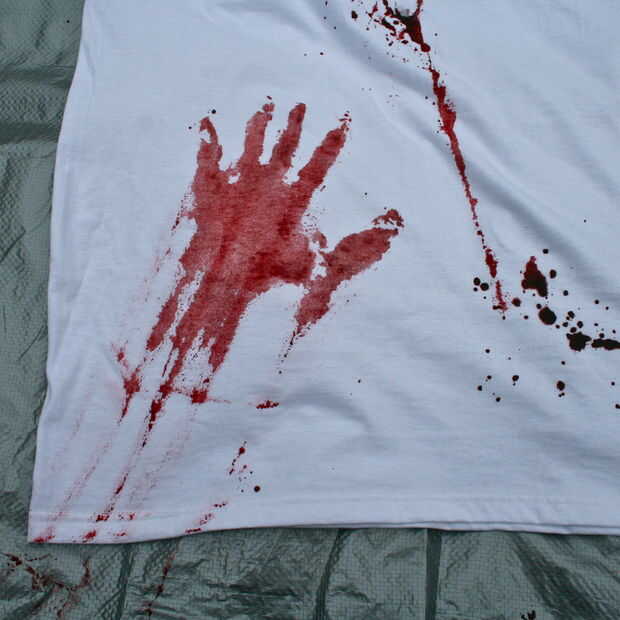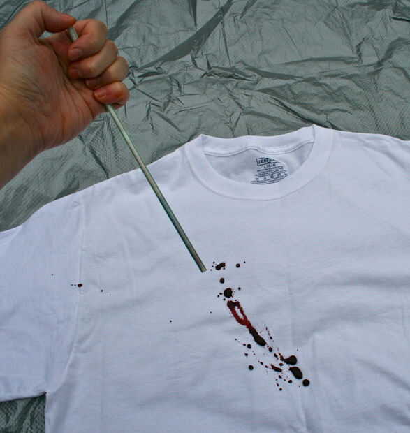 Para evitar el repintado puede colocar un trozo de cartón dentro de la camisa o solo conseguir sucio, divertirse y disfrutar el baño de sangre del centro de las cosas (y ducha inmediatamente después de).