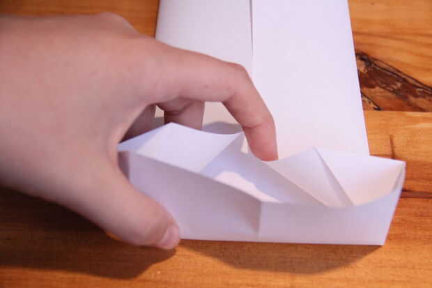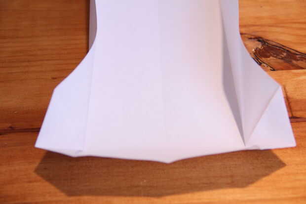 Mientras se sigue pellizcando los triángulos, doble hacia abajo el borde superior. Cayera en su lugar muy bien (ver fotos), así que vaya con él.