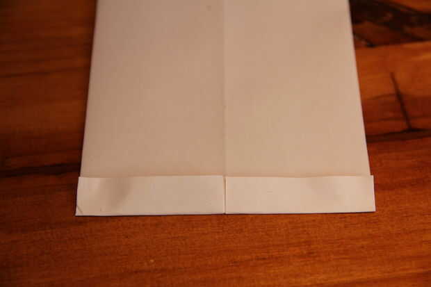 Gire el papel boca abajo y del tirón. Pliegue hacia abajo de un pedacito diminuto del borde superior.