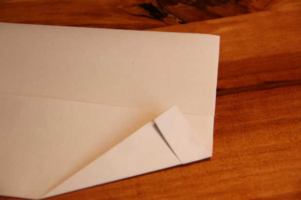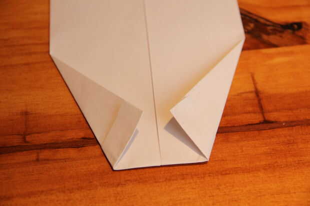 Dé vuelta el papel otra vez y doble hacia abajo las esquinas superiores izquierdas y derecha para que los consejos se reúnen en la línea central. Ahora parece como un collar!
