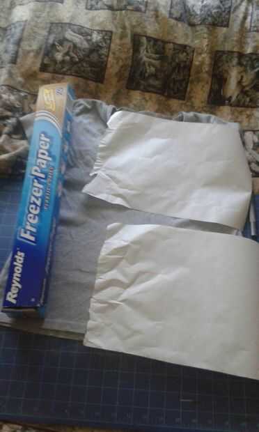 - Cortar dos trozos de papel de congelador del mismo tamaño
