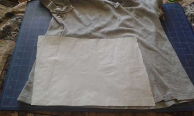 - Coloque la segunda pieza encima de su camiseta y su diseño del bosquejo