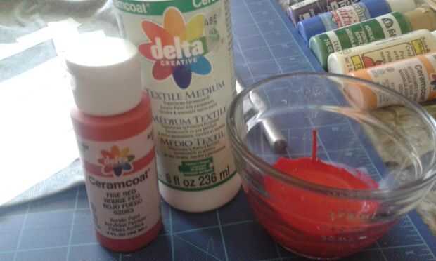 Mezcle el medio textil y pintura según las instrucciones en el medio (en mi experiencia, sin embargo, he encontrado una mezcla 50/50 funciona mejor)