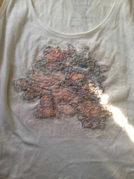 En el interior de la camisa he usado una entretela fusible ligero. Corte un poco más grande que el tamaño del diseño sí mismo y simplemente la había planchada en. Esto evita que los hilos de rosca suelta y también es mucho más cómodo usar!