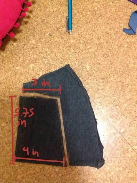 Ahora, es el momento para decidir qué tan grande será su parte media. Con el fin de mantener el borde del dobladillo bonito en la parte media de mis pantalones cortos, así, que decidí cortar mi poco centro de los bordes de una manga de mi camisa, que también tiene ese dobladillo. Para esta pieza, doblé mi manga para el dobladillo se alinea muy bien, y corte con las medidas en la segunda foto. Una vez había cortado el doblez en el lado de 4 pulgadas, será dos piezas opuestas. Coser el derecho lados juntos en la diagonal opuesta del dobladillo.