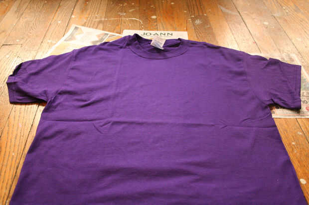 En primer lugar, establezca algún diario viejo y coloque su camiseta en la parte superior. Ahora, resbalón en un trozo de cartón dentro de la camisa. Esto es para evitar las tintas y pigmentos de sangrado a través de la tela.
