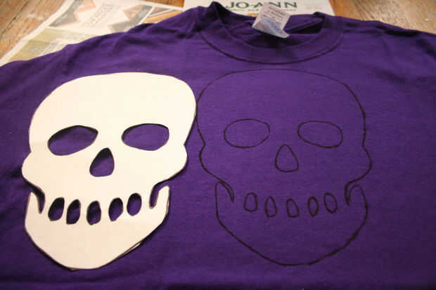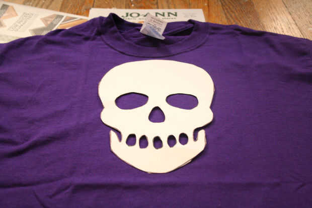 Luego, corte la plantilla de cráneo y coloque encima de la camisa.