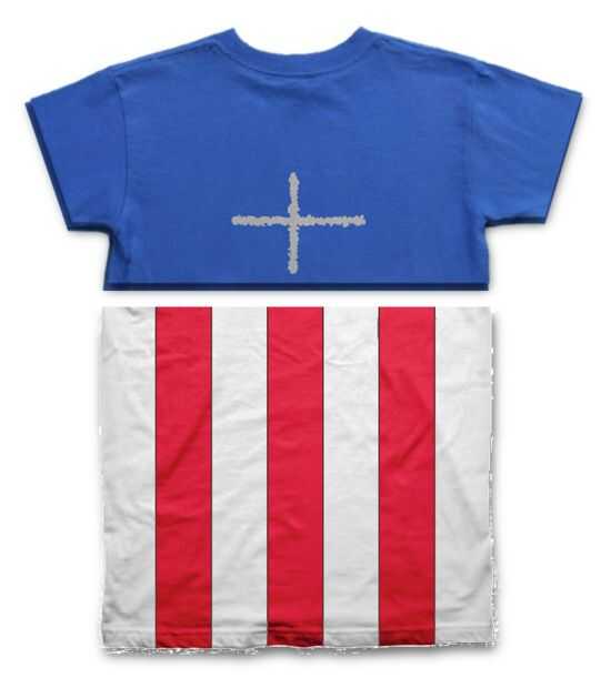 La forma más sencilla de solucionar este problema es colocar las dos piezas como en la foto de arriba. Lo que usted probablemente verá es que la pieza azul es aún más grande que la pieza rayada. Centro de la pieza de rayas por debajo de la pieza azul y luego marque la pieza azul para mostrar cuánto debe ser tomada en ambos lados de la camisa, sólo un simple marquita a cada lado. Vuelva la pieza azul y trazar una línea recta desde la parte inferior de la costura de la axila a la marquita. Perno de la tela y coser a lo largo de la línea en ambos lados. Esto debería hacer el borde en la parte inferior de la pieza azul de la misma longitud y el borde en la parte superior de la pieza rayada, y estás lista para coserlas juntas.