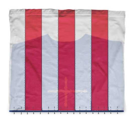 2. Tomar la pieza rayada y tire del revés (para que pueda ver las costuras en el exterior). Usted debe ser capaz de sacar el azul pieza dentro de la pieza de rayas para que la parte inferior del rayado pieza superposiciones del orificio del cuello de la pieza azul y coloque el filo para ser cosidos sobre la otra en la parte inferior. Cuando usted pone este apartamento todos, los exteriores de las piezas debe ser uno frente al otro.